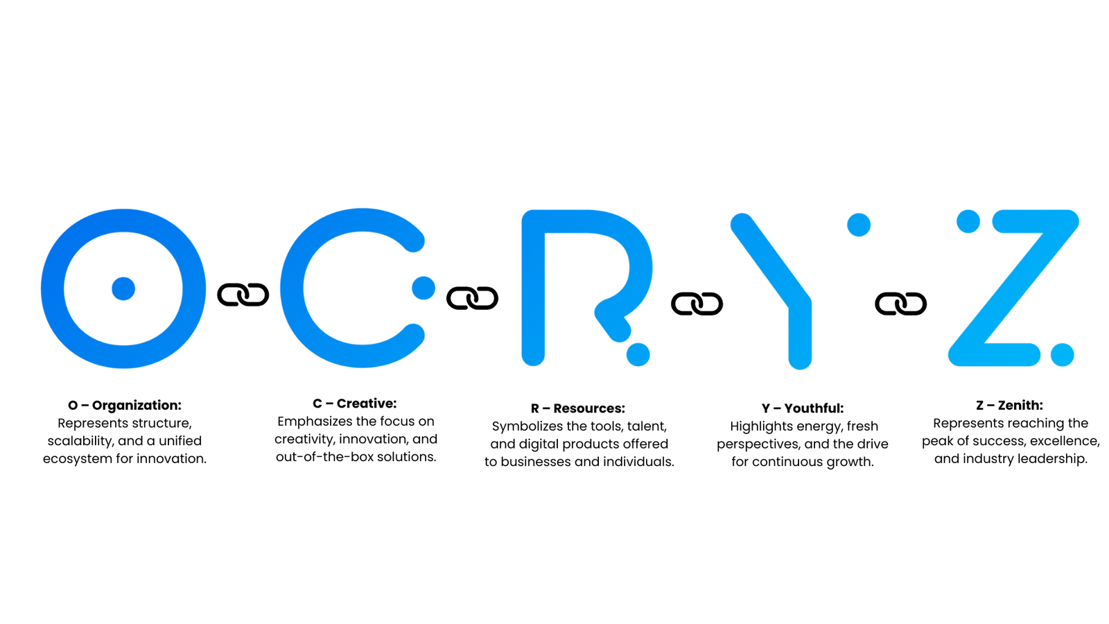 OCRYZ stands for an Organization of Creative Resources and Youthful Zenith, aiming to lead multiple industries with innovation, digital transformation, and entrepreneurial excellence.